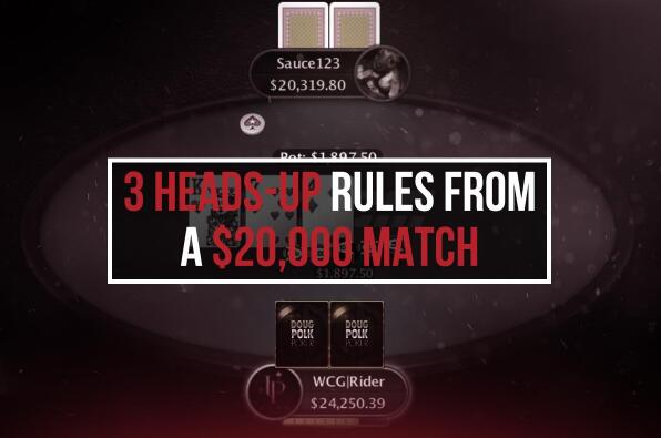 Doug录下了这场比赛,并在一个包括11个部分的视频系列中分析了每一手值得注意的牌局。这个系列的视频也是其高级单挑培训课程的一部分。我观看了这系列视频的前几部分,并挑选出三个帮助你统治对手的单挑“法则”。