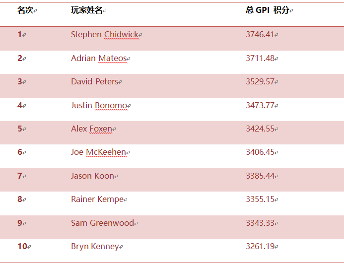 本周GPI全球玩家排行榜前10名玩家并没有多大的变化。名次上周比赛快的知名玩家是Nick Petrangelo,从上周的第21名上升到本周的第11名。