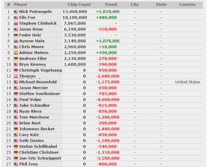 对于Ivey来说,我们期待他在后面更大型赛事的表现!很多粉丝都认为他突破不了10这个数字的魔咒,到底是不是,还不是时间说了算!(截稿时,比赛进入到了前10强环节,玩家数据如下图。)