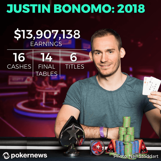 两年前,整个扑克圈都充斥着德国天才牌手Fedor Holz的神话,他在当年闯进24场赛事的钱圈,其中有15场决胜桌,并且拿下了6场赛事的冠军,年度累积奖金$16,093,402。一转眼到了2018年,Justin Bonomo的异军突起搅动了本来就不太平静的扑克圈,他今年截止目前的战绩直逼当年的Fedor Holz,但大家需要注意的是2018年才刚刚进行到一半,接下来的半年会发生什么谁又能预料呢。。。