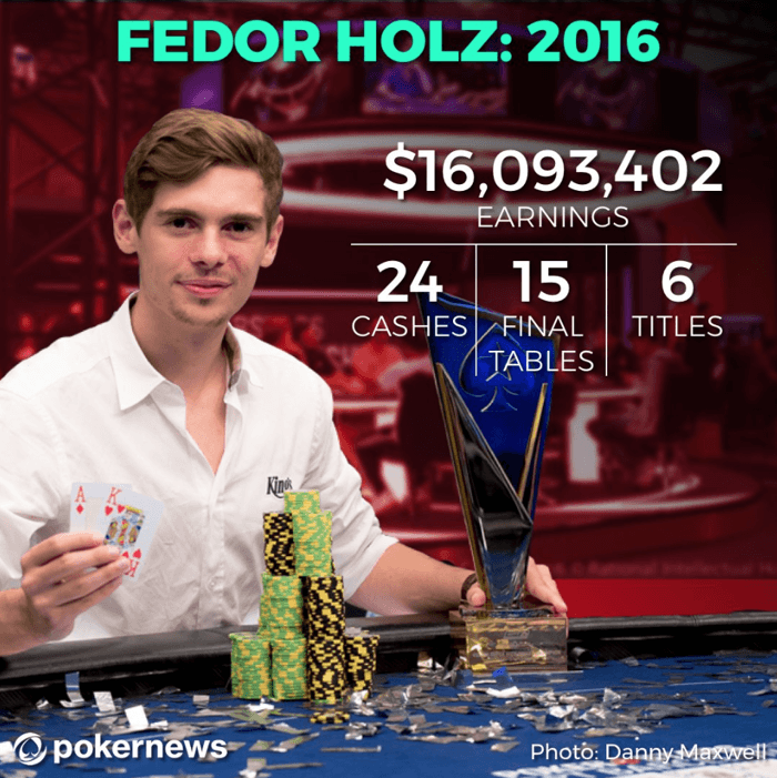 在2016年的世界扑克锦标赛中,Holz拿下了183人阵容的$111,111小型一滴水豪客赛的冠军,奖金$4,981,775。区区一个月之后,他现身欧洲扑克巡回赛巴塞罗那站,赢得了€50K超高额豪客赛的冠军,奖金$1,473,127。当时他在豪客牌桌上的现身带给他人的永远是绝望,不是取得冠军就是打入决胜桌,他的赛场比游戏开挂还可怕!