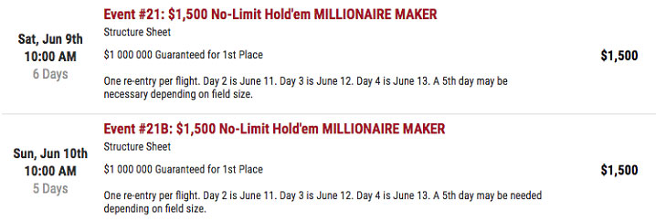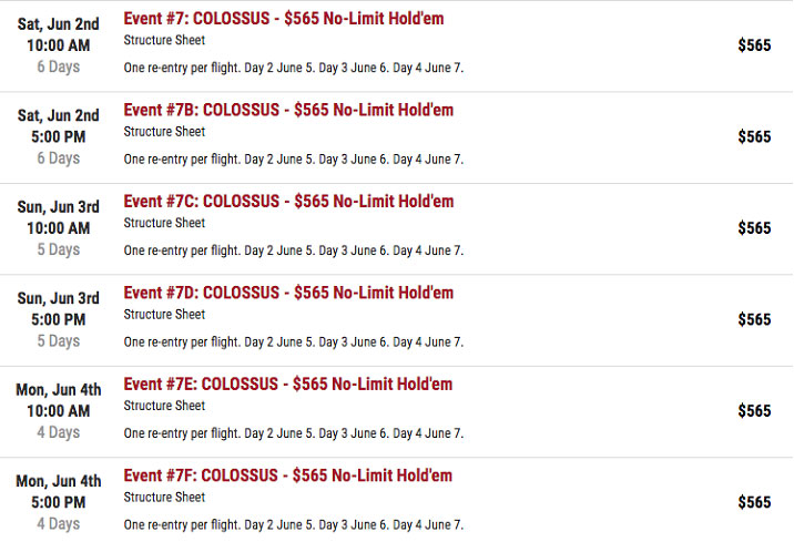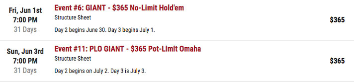 365美元买入的无限德州扑克巨人赛将于六月的每周五进行Day1的分组赛,而底池限注奥马哈巨人赛将于六月的每周日进行Day1的分组赛。