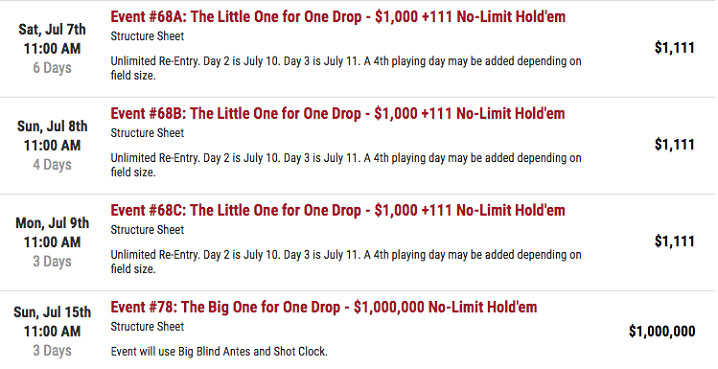 1111美元买入小一滴水赛和100万美元买入大一滴水赛(7月7日、8日、9日、15日)