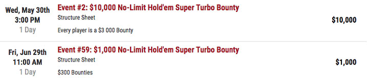 买入费分别为1000美元和10000美元的两个超高速赏金赛(5月30日,6月29日开赛)