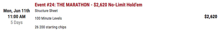 这项为期五天的赛事为那些喜欢大起始筹码和长盲注级别的牌手专门开设。肯定会有人在比赛时抱怨节奏太慢!没有足够的耐心请慎入。