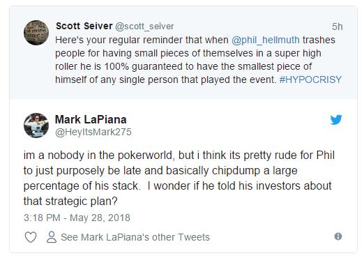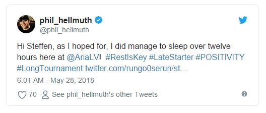 推特大意(下):我是一个圈外人,但我觉得Phil Hellmuth迟到的行为是非常不礼貌的,晚来一点可能会比其他选手多出很多筹码,但作为顶尖牌手有必要吗?