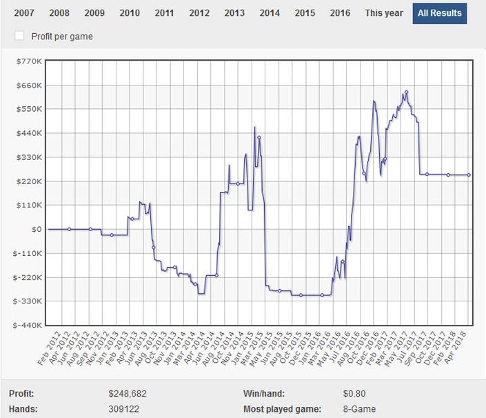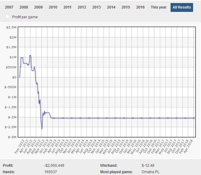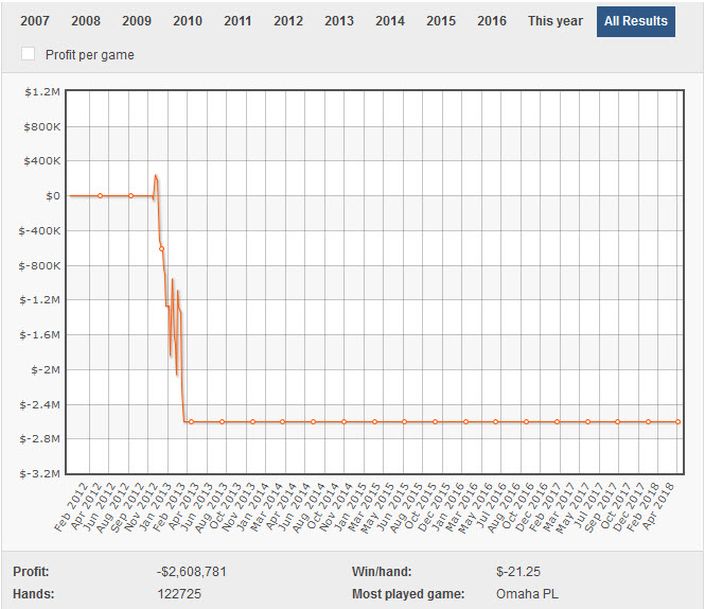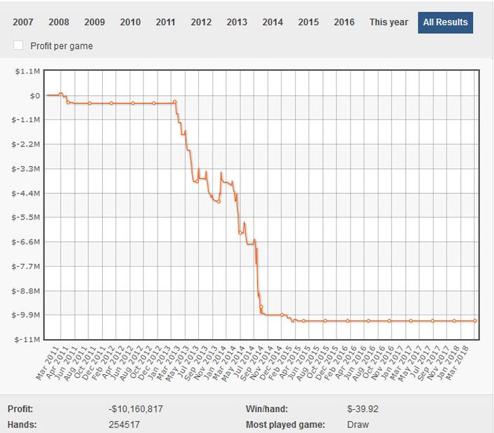 下图是他的打牌亏损数据,累积接近1500万美元。