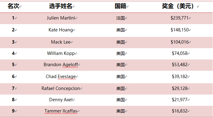 Julien Martini赢得WSOP第4项赛事,入账$239,771