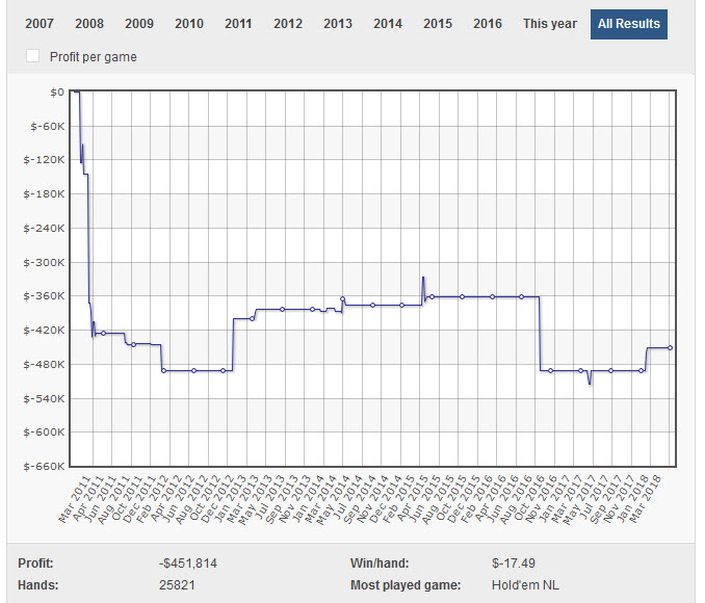 “大丹牛”Daniel Negreanu也许是扑克之星的最佳代言人,但我们瞟一眼他在扑克之星亏损48万美元的“盈利”曲线图,就知道在后台老板的站点打牌并不是他的长项。