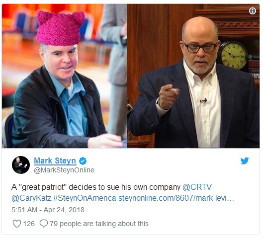 加拿大作家兼政论家Mark Steyn(曾是CRTV的广播主持)对此发布推特——最伟大的捍卫者就是要状告自己的公司。