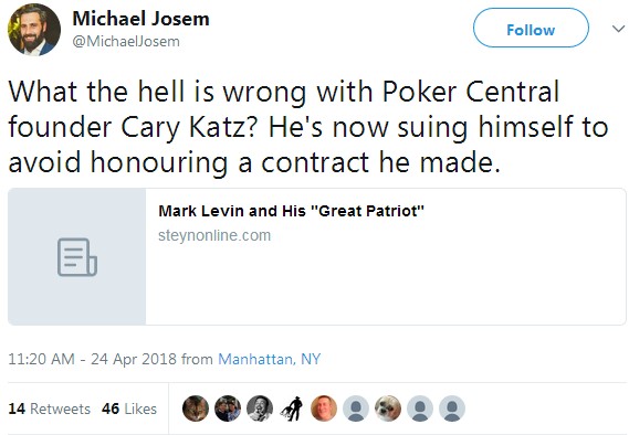 Michael Josem,为多个博彩品牌工作过,如扑克之星、138、全速扑克等,他发布推特说,“中央扑克创始人Cary Katz哪里做错了?维护自己利益有什么不对?”