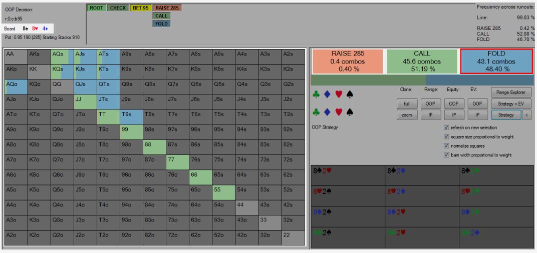 该范围48.4%的时候对持续下注弃牌(红色方框标示)。