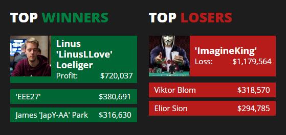 2018年首个赢利达到100万美元的网络牌手很可能是Linus ‘LinusLLove’Loeliger,他今年在200/400美元的无限德州扑克现金局一直战绩辉煌。目前他在总共33864手牌中赢到了72万美元,这在PokerStars如今的鼻血级牌局是相当不错的成绩。自他的帐户在2016年有记录起,LinusLLove已经赢到了135万美元。