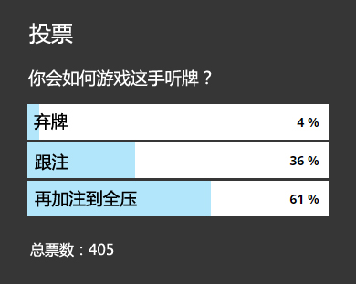 为了用超级听牌赚到最多利润,你必须乐意在你可以生成一定弃牌赢率的场合激进地游戏。