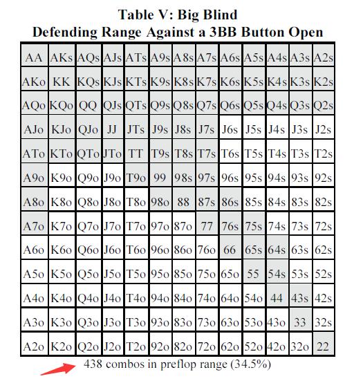 如那一节我们的讨论,在按钮玩家vs大盲玩家场合的单一加注底池,我们可以用K大同花听牌随后check或下注,拿着听牌时可能有很多种混合策略。很多听牌既可以下注,又可以check,这就是为何它们往往没有列出来的原因。