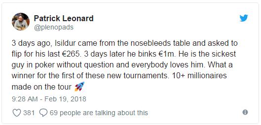 这并非今年与大型赛事有关的唯一著名赌博。本月早些时候,网络扑克传奇Isildur1在罗兹瓦多夫赢得了Party Poker百万赛主赛事冠军,而他能够报名比赛竟是因为压上最后的265英镑,邀请正在打牌的Patrick Leonard和他做了一次掷币对决。