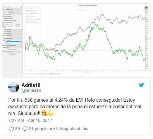 在此次挑战中Adria 'Adriia18' Diaz Dalmau针对“坐满就玩”玩家的经验差异制作了一份平均投资回报率图表和基于小样本容量的真实投资回报率图表以更真实的反映选手的技术和能力。“坐满就玩”的投资回报率容易受成倍奖金的影响,这是该游戏的特点之一。