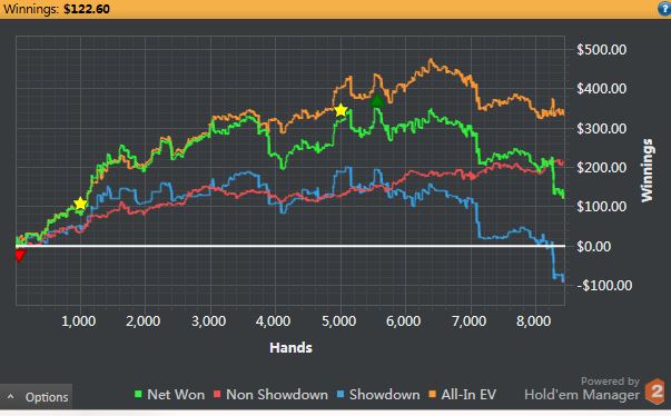 在2.27的晚上,一个小时左右的tilt,损失了8个buyin,触发了记录下整个过程的想法。