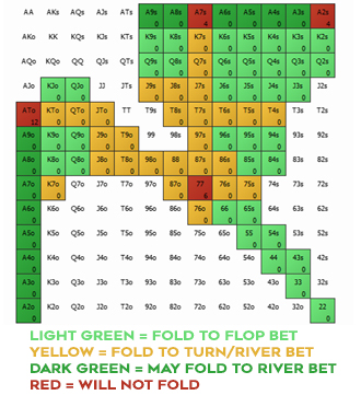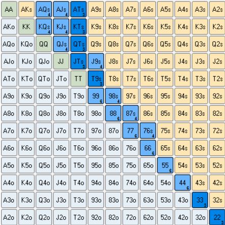 假设一个叫Rafi的牌手翻前用下面的范围跟注。