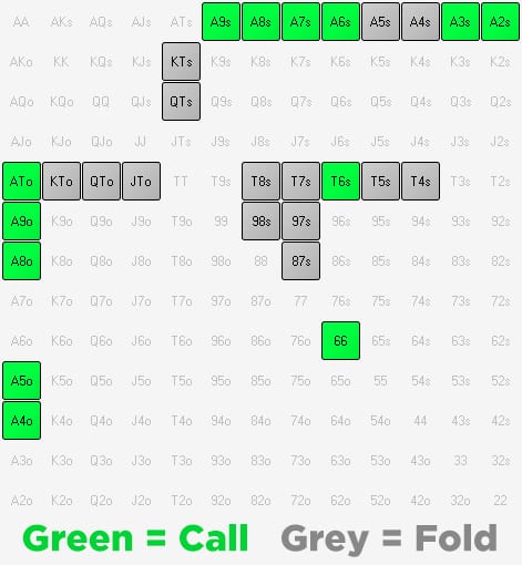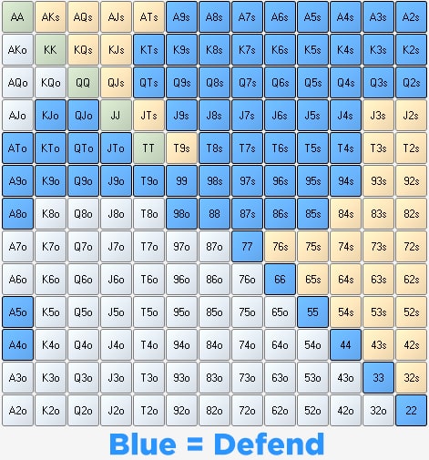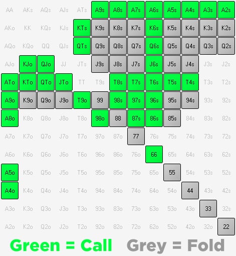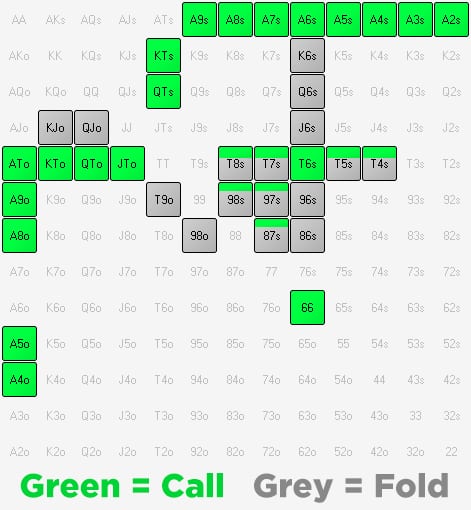 大盲对CO加注开牌玩家的跟注范围(99-22,A9s-A2s,KTs-K2s,QTs-Q2s,J9s-J4s,T8s-T4s,94s+,85s+,ATo-A8o,A5o-A4o,KJo-K9o,Q9o+,J9o+,T9o,98o)
