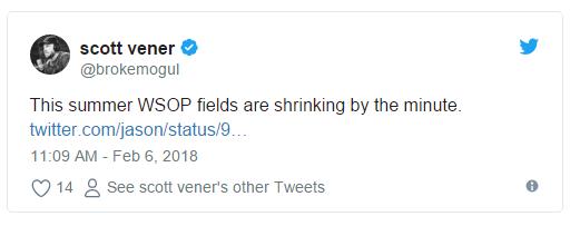2018世界扑克锦标赛的参赛人次会破纪录吗?我认为这个答案会和加密货币的走势挂钩。不难发现,加密货币市场和扑克业似乎变得越来越依赖。