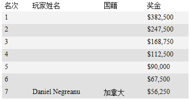 进入钱圈的7人可获得的最低奖金为$56,250,在决赛桌诞生的最后一手牌中,Daniel Negreanu不幸被Isaac Haxton淘汰出局,这一手牌发生在底池限注奥马哈牌局中,Isaac Haxton运气实在好得让人羡慕!