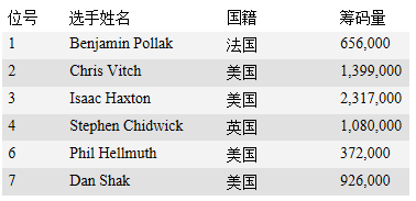 决赛桌玩家数据: