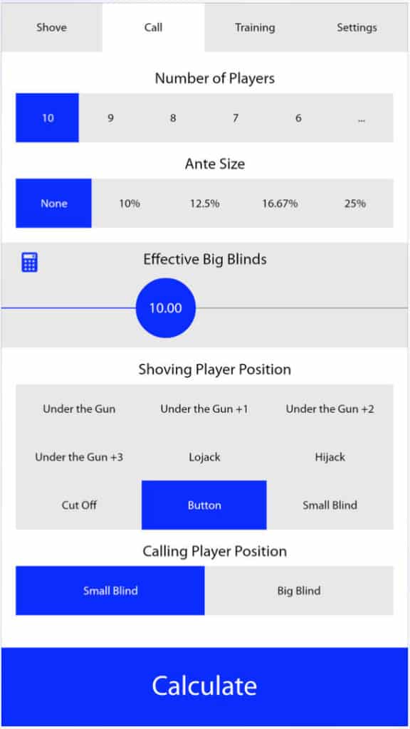 此外,因为SnapShove提供手机版,它也可以用于现场锦标赛。但是,如果你打算在现场扑克锦标赛使用它,那么你应该预先考虑一种情况——其他牌手可能对于你在行动时使用手机不太友善!(还有,在打牌时使用辅助表格是违反大多数赌场的规则的。)