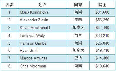 美女牌手Maria Konnikova首获大赛冠军头衔