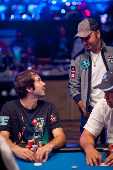 Jason Mercier在赛场与大丹牛Daniel Negreanu寒暄。