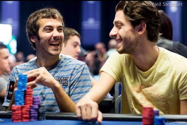 Jason Mercier和Igor Kurganov在2013欧洲扑克巡回赛总决赛赛场愉快地交谈。