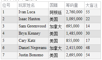 扑克之星锦标赛巴哈马站$100,000超高额豪客赛决赛桌已产生,阿根廷选手Ivan Luca是筹码量领先者,紧随其后的是扑克之星战队成员Justin Bonomo和Daniel Negreanu。