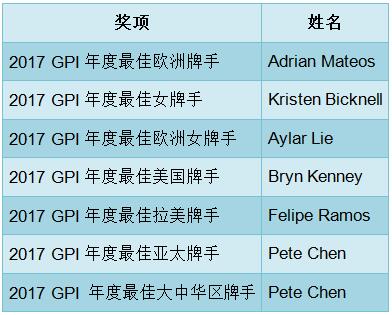 GPI网站也公布了其他根据年度扑克成绩得出的荣誉称号