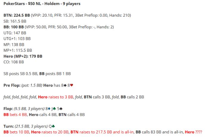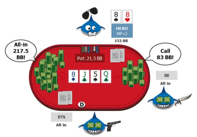 圣诞临近,我们的周围一派喜庆的节日氛围,哪怕是扑克圈!这次我们准备在NL50级别开心地大赚一笔!但扑克终究是扑克,你总是需要保持警惕。我们的Hero拿到了两张雪人(一对8),他率先加注,然后得到了后面位置的两个跟注……