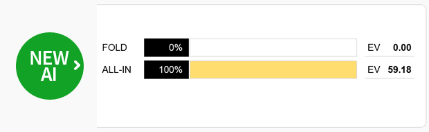 因此,做出正确决定的方法是找出对手的平均范围。大多数时候,对手会亮出小口袋对子,A高牌,同花连子,甚至是纯垃圾牌。所以,平均而言,口袋对子QQ完全碾压对手的范围。新版PokerSnowie对这种情况的评估是正确的,它估计跟注平均将赚到59BB。