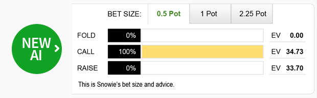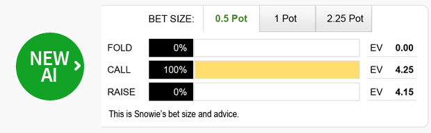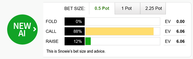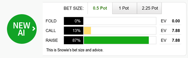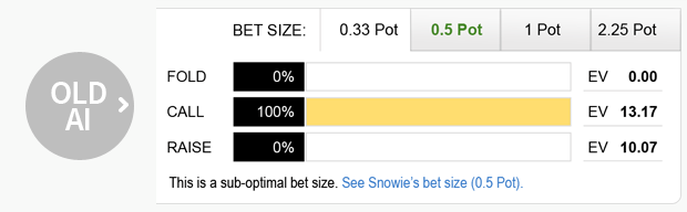 因此,综上所述,我同意加注是一种强很多的玩法。但是,为了平衡跟注范围,新版PokerSnowie仍然会在13%的时候跟注。