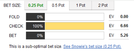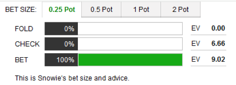 下一篇文章,我们将查看PokerSnowie使用25%底池大小下注的另一个例子。