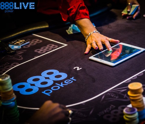 其实888扑克有为此次赛事特意设计APP的研发团队。我们使用的是一台十寸的平板电脑,APP从庄位开始启动,每次轻轻拍一下就会开始计时,在这个环节荷官的工作相对于以前较轻松。最后五秒会有滴声倒计时,还有加时按纽。