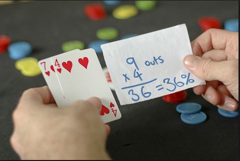 网上有很多基于补牌数的牌面成败比表格数据。通常大家可以采用四二法则,研究转牌到河牌的胜率,假设你挺到了河牌圈,简单地将你的补牌数乘以四。你有九张补牌,那么你击中同花的概率大约在36%。也就是说在这样的100种牌况下,你会有36次击中同花牌组。那么此时你的成败比就是1.8:1,或者说可以理解为对你没用的牌与对你有用的牌的比。
