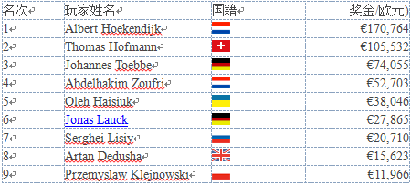 比赛的季军是Johannes Toebbe,在翻牌前被Albert Hoekendijk跟注,获得奖金€74,055。