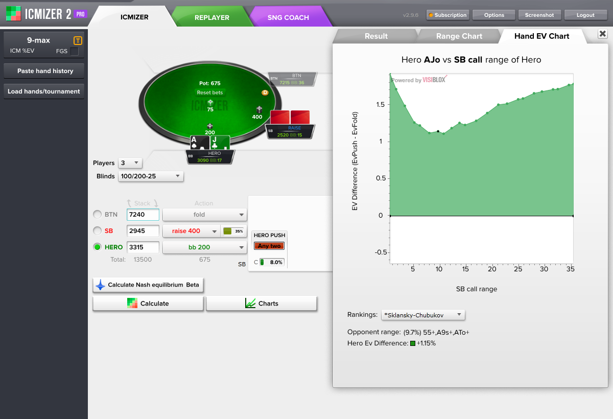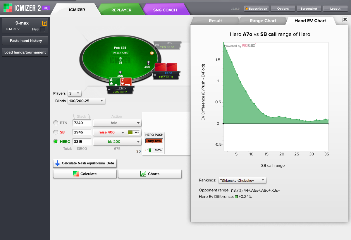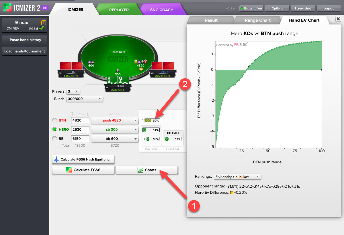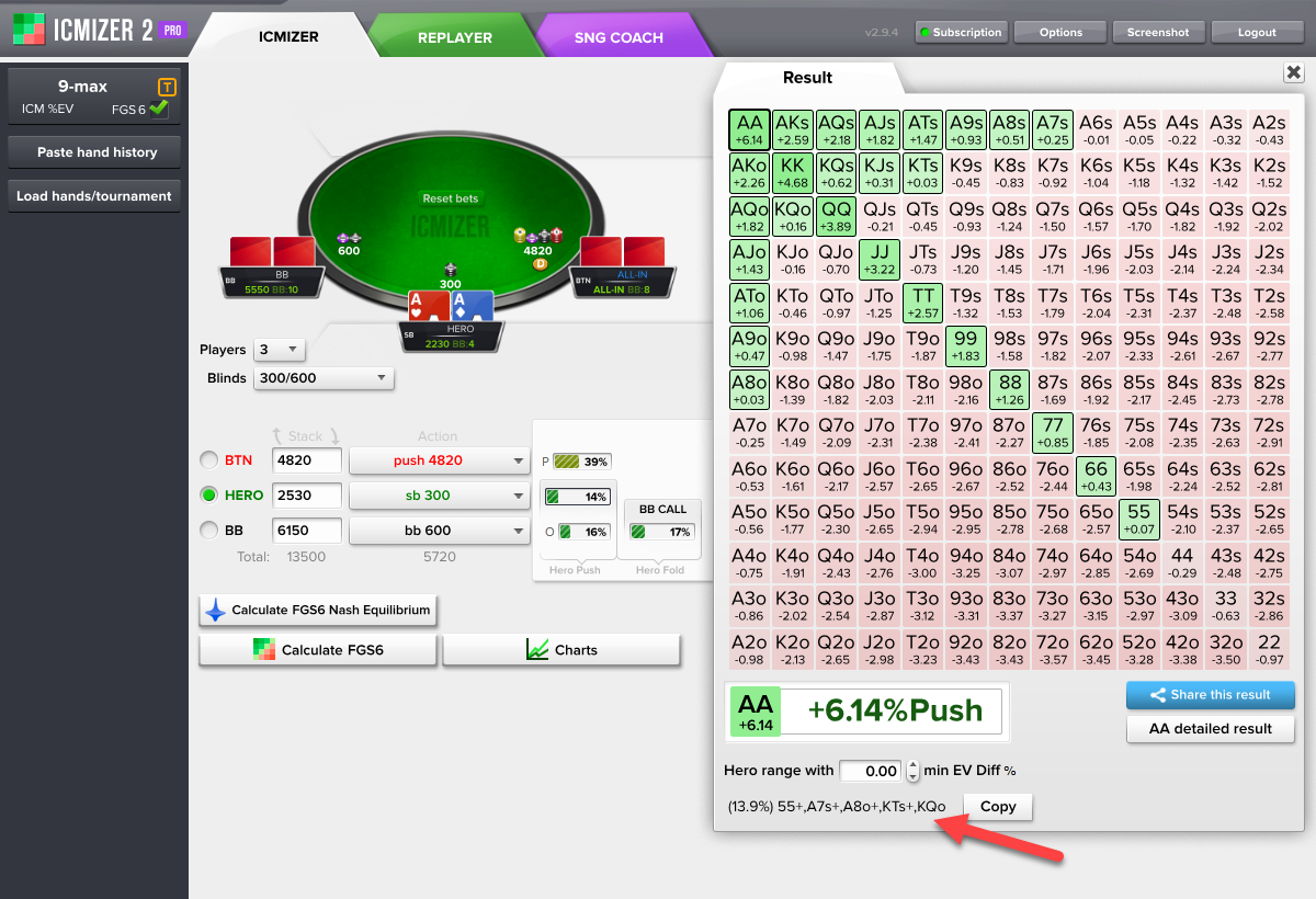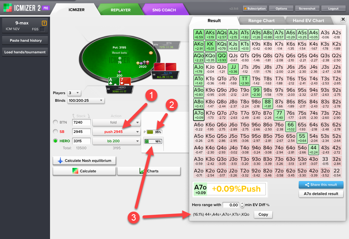 你从ICMIZER计算器得到的结果取决于你的输入。ICMIZER的使用是艺术与科学的结合。纳什均衡范围是科学的那部分,而艺术的部分是你对于对手的范围所做的手动调整。