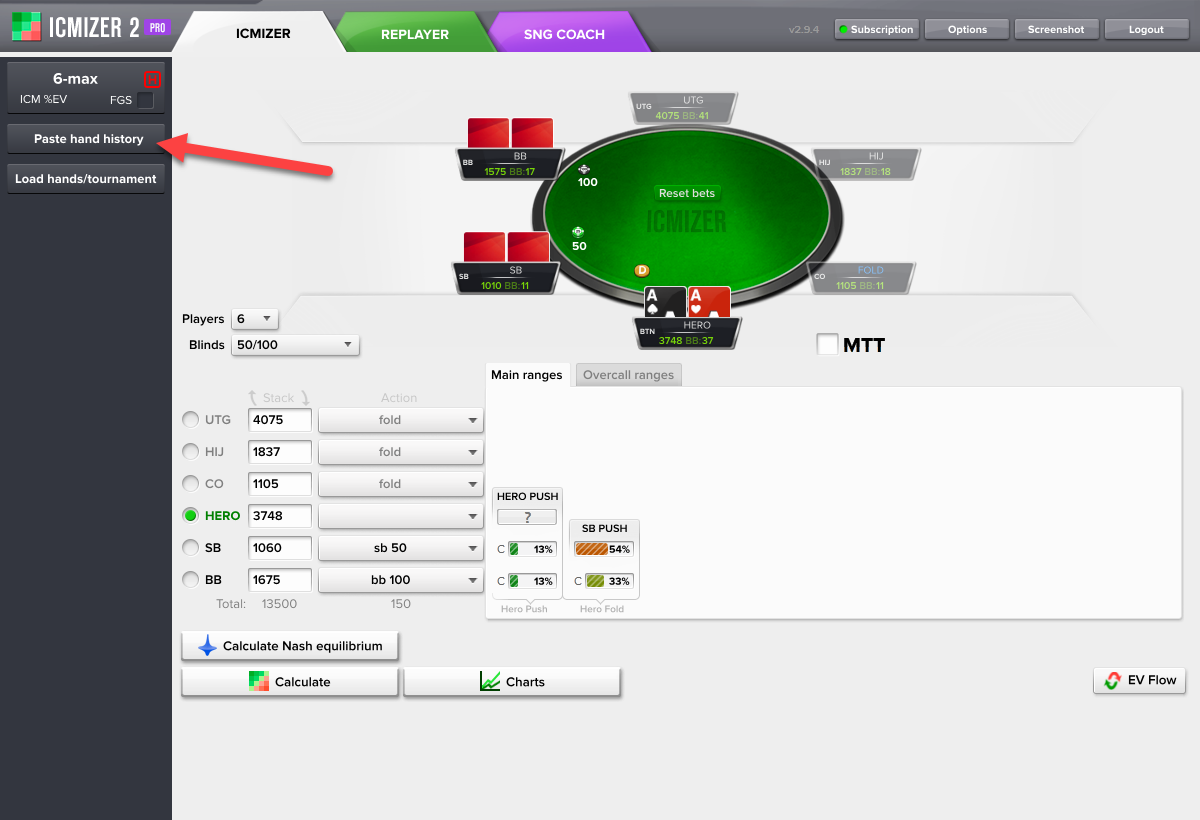 首先,你需要将历史牌局拷贝到剪贴板。然后点击“Paste hand history”按钮。