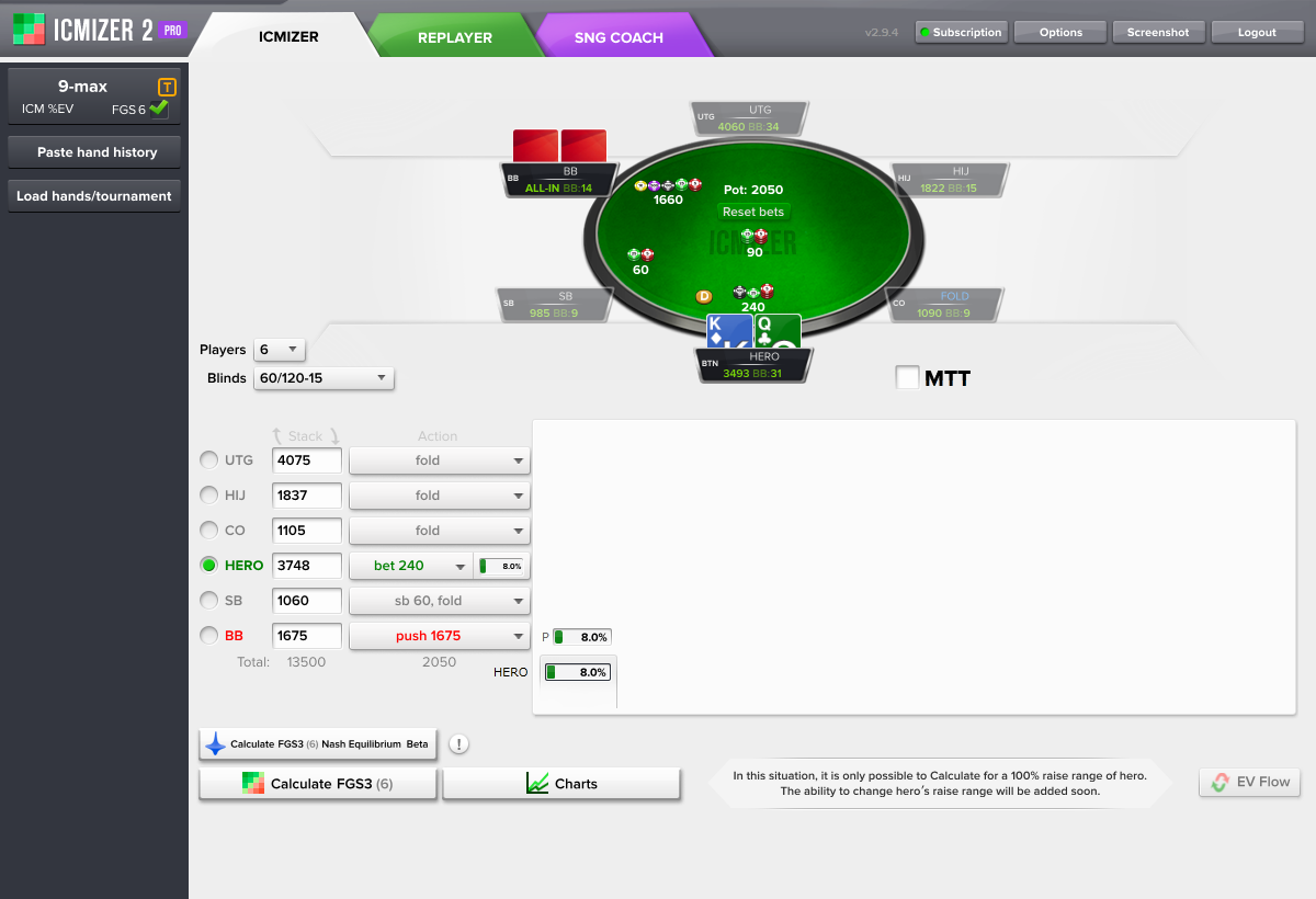 ICMIZER是一种用于扑克锦标赛的翻前纳什计算器,它可以计算出几乎任何一种扑克锦标赛场景的最优范围。