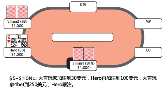 专家提示:如果对手只用QQ+和AK跟注全压,最好用QQ平跟4bet。
