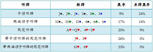 专家提示:用具有后门听牌胜率的牌做持续下注,然后在转牌不利时放弃是可行的。