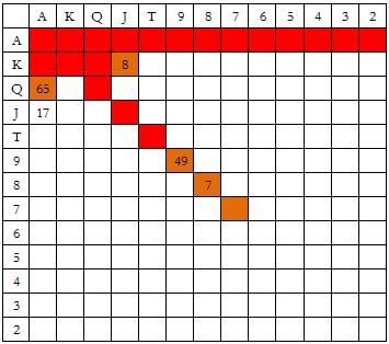 我的许多学生在拿着A5s做压榨加注被按钮玩家跟注时有点畏战。他们翻牌圈做持续下注,按钮玩家跟注,然后他们就放弃了。他们对于做大额半诈唬感到不适。我不得不时常提醒他们,他们的对手甚至更不适应用弱牌去跟注大额下注,对抗一个明显有范围优势的牌手!