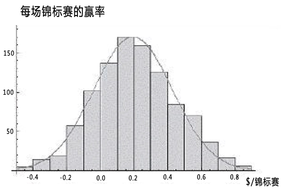 正态近似不需要个别牌局或个别锦标赛的结果具有正态分布的结果。正态近似的意义在于正态分布可以用于理解总体结果而不是单独的结果是正态分布的。我们来看一个例子。
