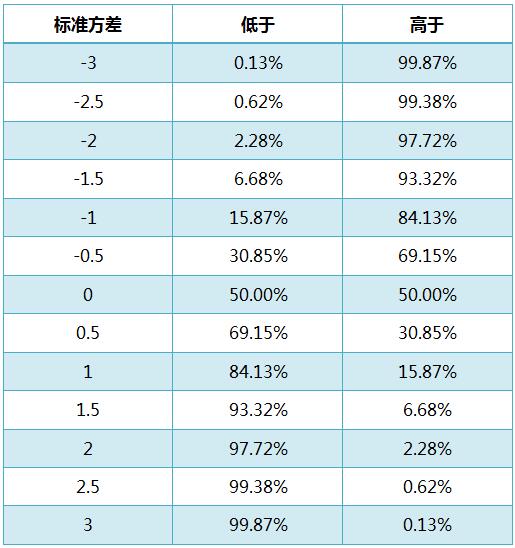 在正态分布中,2.28%(或1/44)的时候会发生低于平均值2个标准方差的情况。