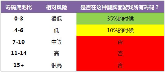 在低筹码底池比的场合,你在糟糕的翻牌面的投入程度主要取决于你预计的弃牌胜率,以及你的高牌。如果你在筹码底池比较高的场合诈唬,假设第一次诈唬失败,放弃再次诈唬通常是明智。