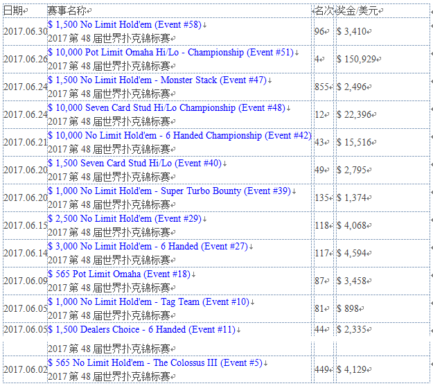 备受争议的扑克牌手兼全速扑克前老板Chris "Jesus" Ferguson在今年已入围14次WSOP钱圈,目前不仅位于2017 WSOP年度玩家排行榜榜首,而且还打破了WSOP单年钱圈记录。